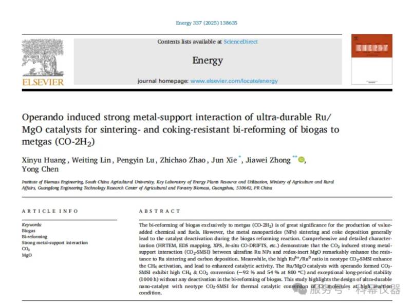 第一作者:黄心宇通讯作者:李浩然文章名称:《Operando induced strong metal-support interaction of ultra-durable Ru/MgO catalysts for sintering- and coking-resistant bi-reforming of biogas to metgas (CO-2H2)》影响因子:9.401老师简介钟家